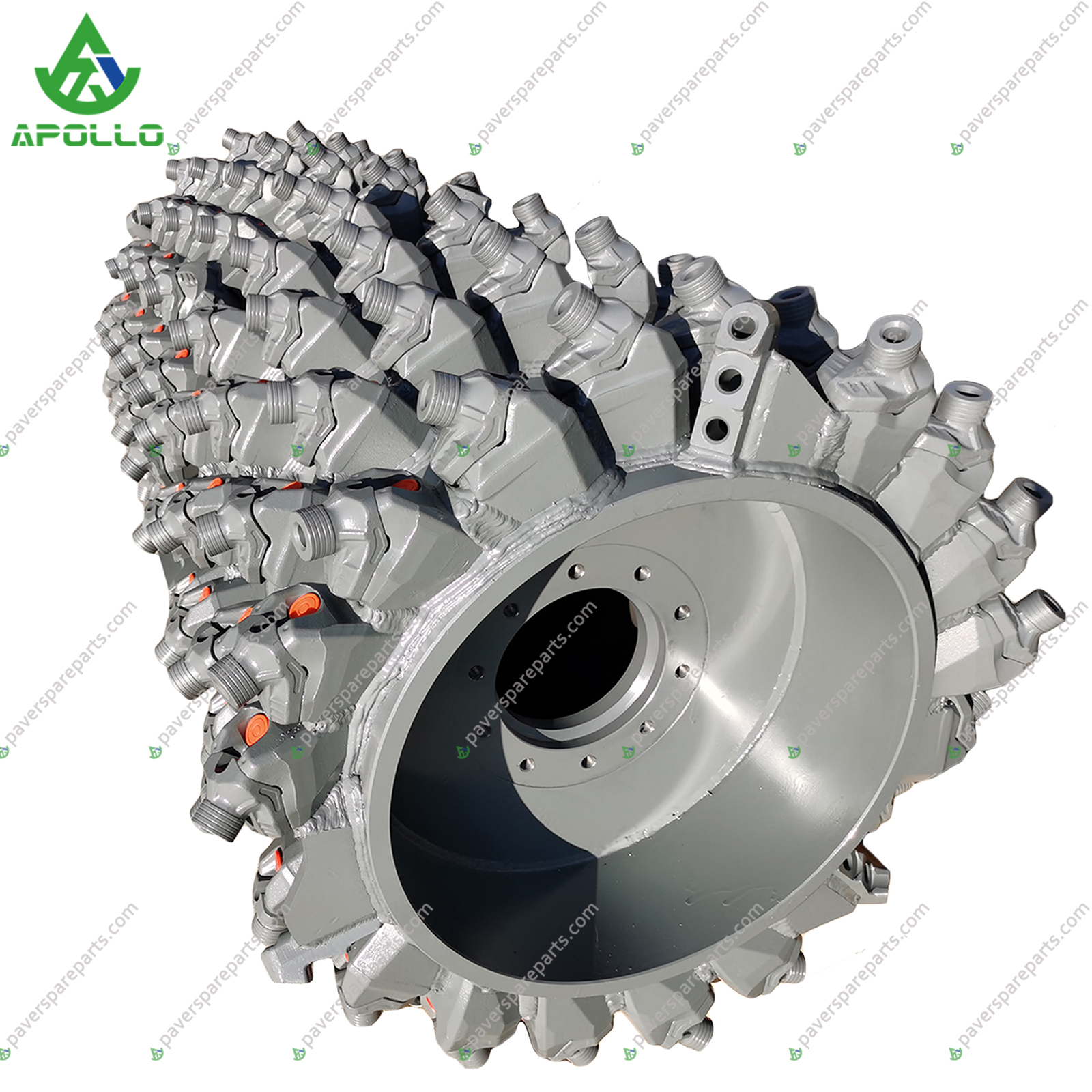 The APOLLO W2100 milling drum is a precision-engineered component designed for fine to standard milling operations, producing smooth, even surfaces ideal for asphalt overlay applications.